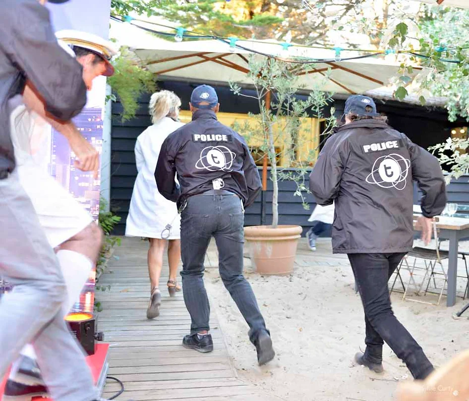 Interrogé et malmené par le public qui mène son enquête pour découvrir le pot aux roses, Miss Joliet et Jeanne Thon font tout pour se discuper… Un cluedo géant proposé par L’agence Transversales à des comités d’entreprise ou autres…